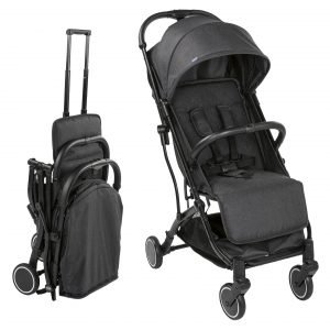 - Easy-grip handle and parent and child trays. Rear wheel diameter: 8 inch